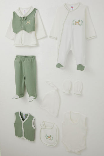 BRE Breeze Baby Boy Hospital Outfit 8 Piece Fixed Bow Tie Vest 0-3 Months, Ecru - Tottenham