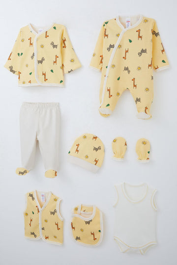BRE Breeze Baby Boy Hospital Outfit 8 Piece Mini Safari Themed Animal Patterned 0-3 Months, Yellow - Wood Buffalo