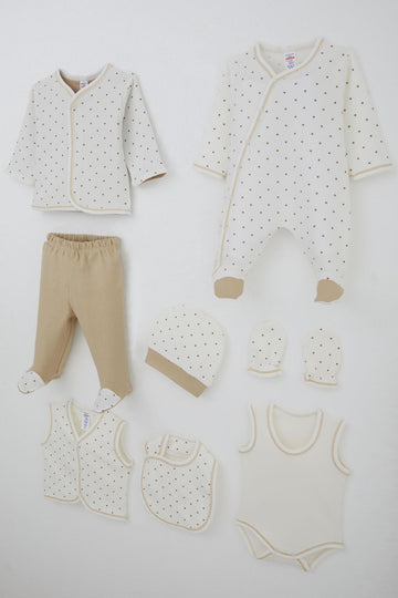 BRE Breeze Baby Boy Hospital Outfit 8 Piece Polka Dot Patterned 0-3 Months, Ecru - Neuss