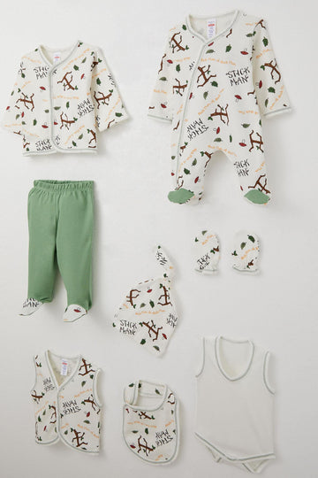 BRE Breeze Baby Boy Hospital Outfit 8 Piece Tree Man Patterned 0-3 Months, White - Fresno
