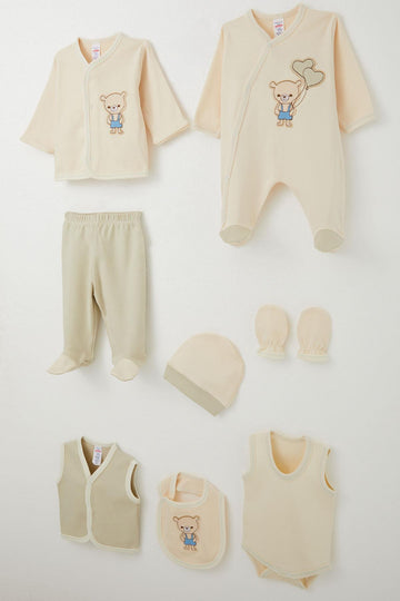 BRE Breeze Baby Boy Hospital Outfit 8-Piece with Cute Bear Embroidery 0-3 Months, Cream - Fruit Cove