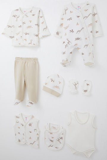 BRE Breeze Baby Boy Hospital Outfit 8 Pieces Palm Tree Patterned Cute Animals 0-3 Months, Ecru - Catonsville