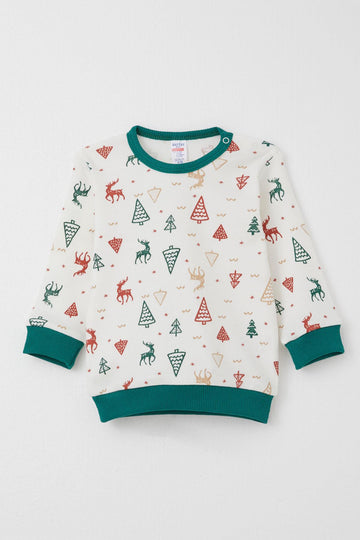 BRE Breeze Baby Boy Pajama Set Christmas Themed Deer Patterned 4 Months Year, Ecru - Sion