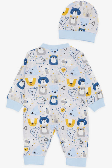 BRE Breeze Baby Boy Romper Cute Bear Patterned 0-3 Months-6 Months, Ice Blue - Indio