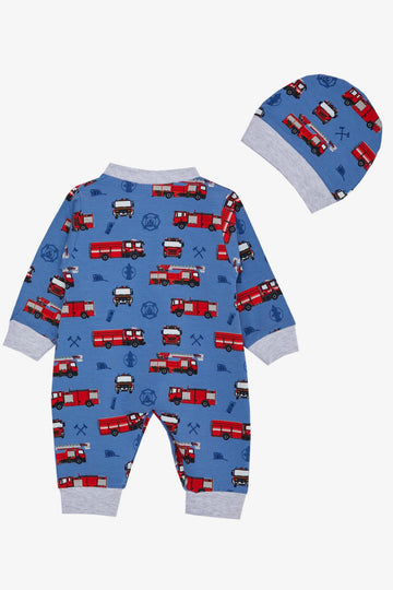 BRE Breeze Baby Boy Romper Fire Truck Patterned 0-6 Months, Indigo - Lynwood