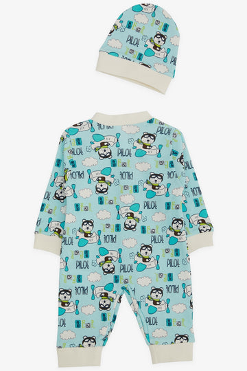 BRE Breeze Baby Boy Romper Pilot Bear Patterned 0-3 Months-6 Months, Light Blue - Neustadt