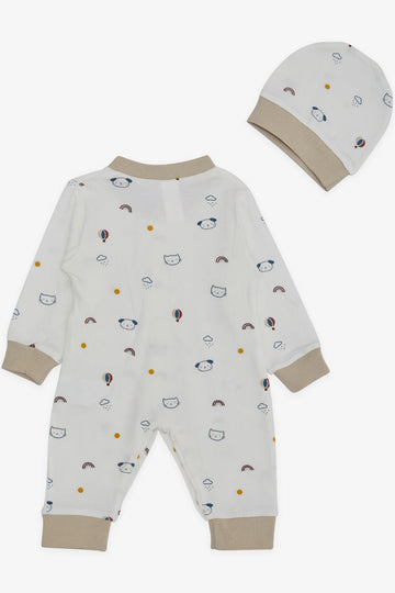 BRE Breeze Baby Boy Romper Sky Themed Animal Patterned 0-6 Months, Ecru - East Point