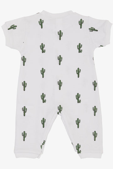BRE Breeze Baby Boy Short Sleeve Romper Cactus Patterned 0-6 Months, White - Oak Lawn