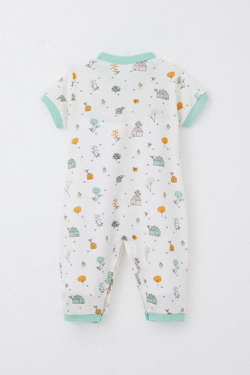 BRE Breeze Baby Boy Short Sleeve Romper Nature Themed Home Patterned 0-6 Months, White - Granada