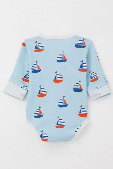 BRE Breeze Baby Boy Snap Bodysuit 3-Pack Sailboat Pattern with Built-in Mittens 0-6 Months, Light Blue - Oranienburg