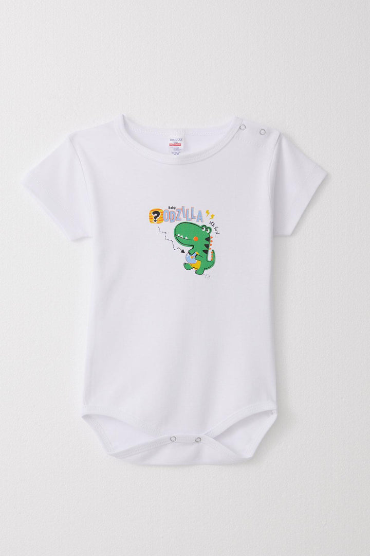 BRE Breeze Baby Boy Snap Bodysuit Fun Dinosaur Printed 9 Months-3 Years, White - Algeciras