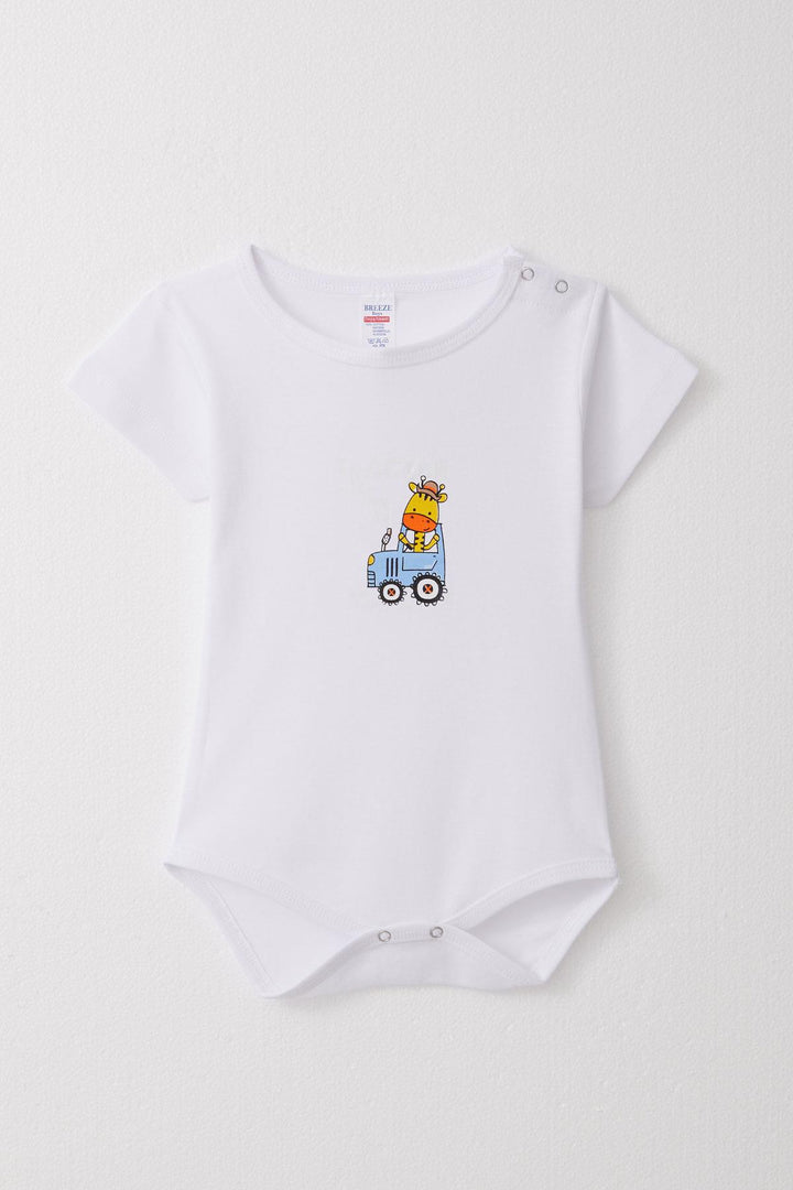 BRE Breeze Baby Boy Snap Fastener Bodysuit Cute Giraffe Printed 9 Months-3 Years, White - Mansfield