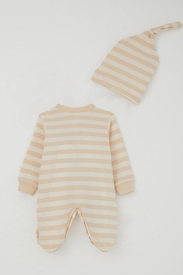 BRE Breeze Baby Boy Striped Romper with Socks 0-6 Months, Cream - Scandicci