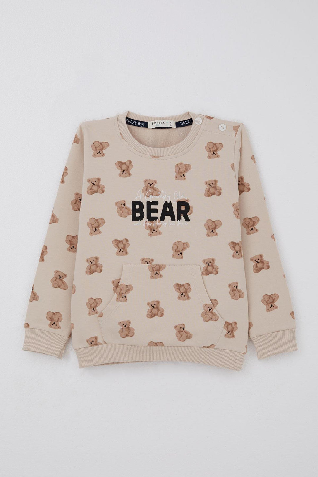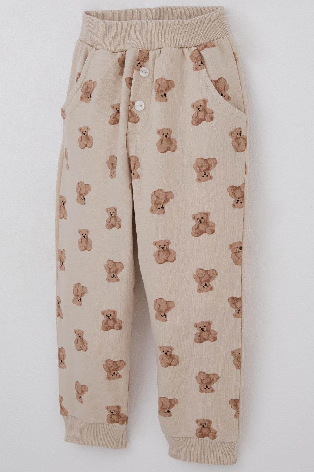 BRE Breeze Baby Boy Tracksuit Cute Bear Patterned Pants Button Accessorized 9 Months-3 Years, Beige - Port Charlotte