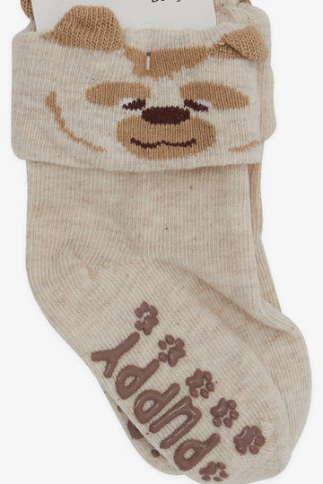 BRE Katamino Baby Boy Socks with 3D ABS, 6 Months-2 Years, Beige Melange - Delicias
