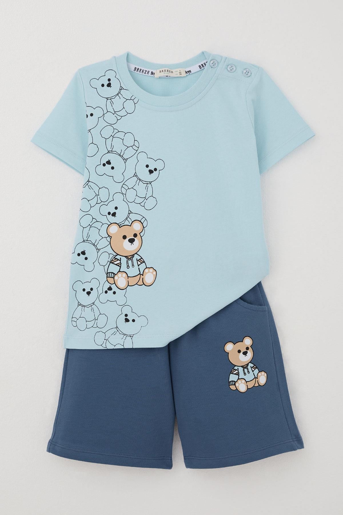 BRE Breeze Baby Boy Shorts Set Toy Bear Printed 9 Months-3 Years, Light Blue - Westland