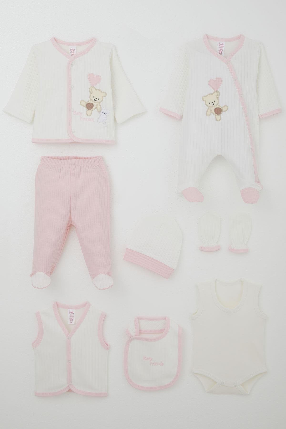 BRE Breeze Baby Girl Hospital Outfit 8 Piece Baby Bear Embroidered Heart 0-3 Months, White - Salon-de-Provence