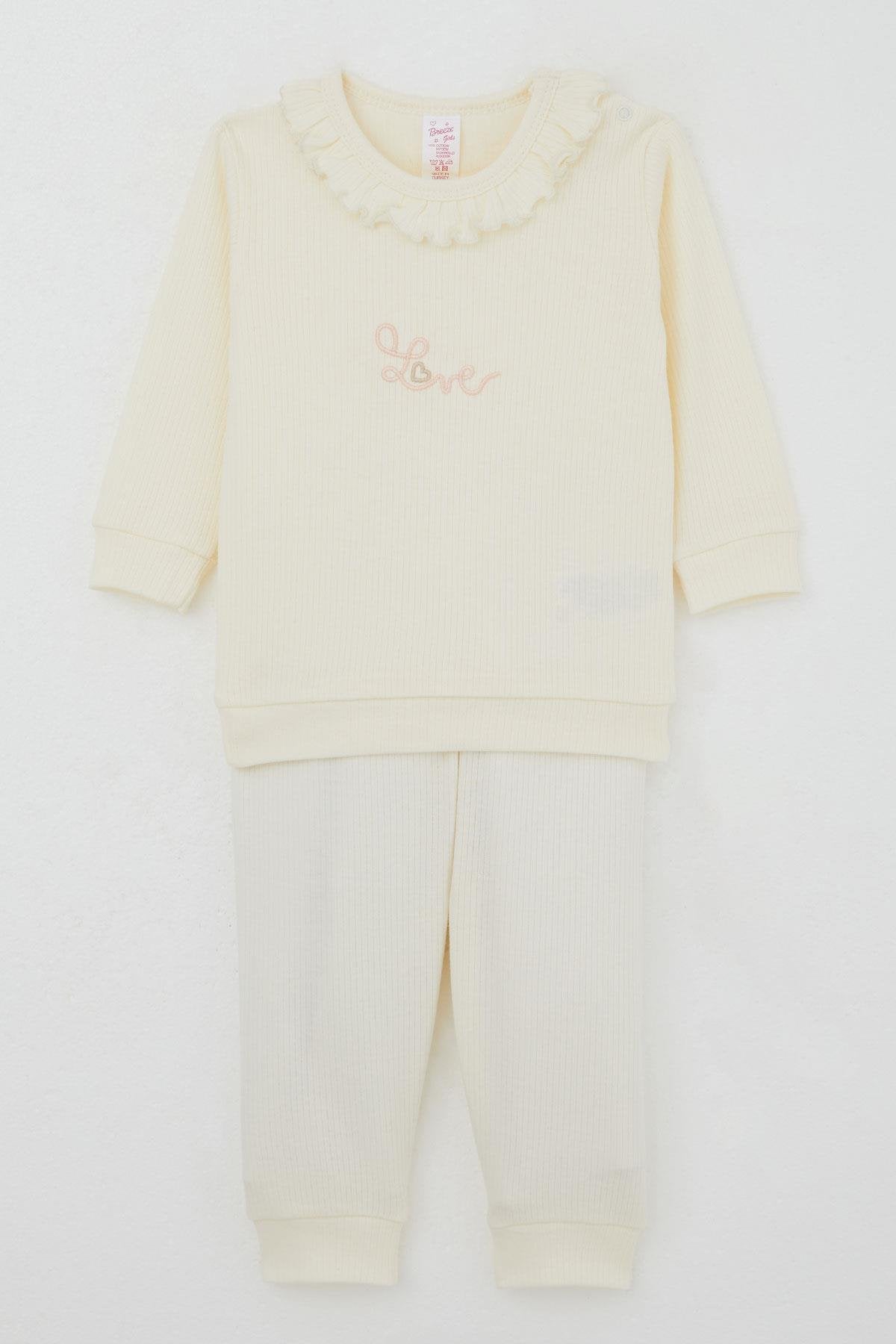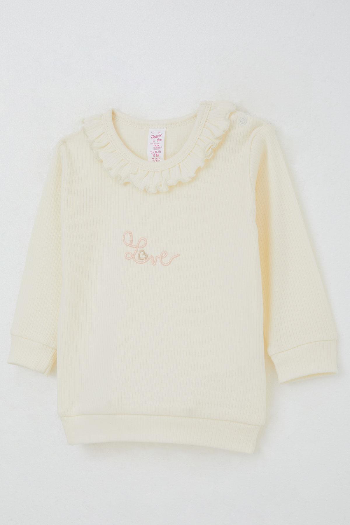BRE Breeze Baby Girl Pajama Set with Frilly Shoulder Buttoned Collar Embroidered with Writing 4 Months Year, Cream - San Germán