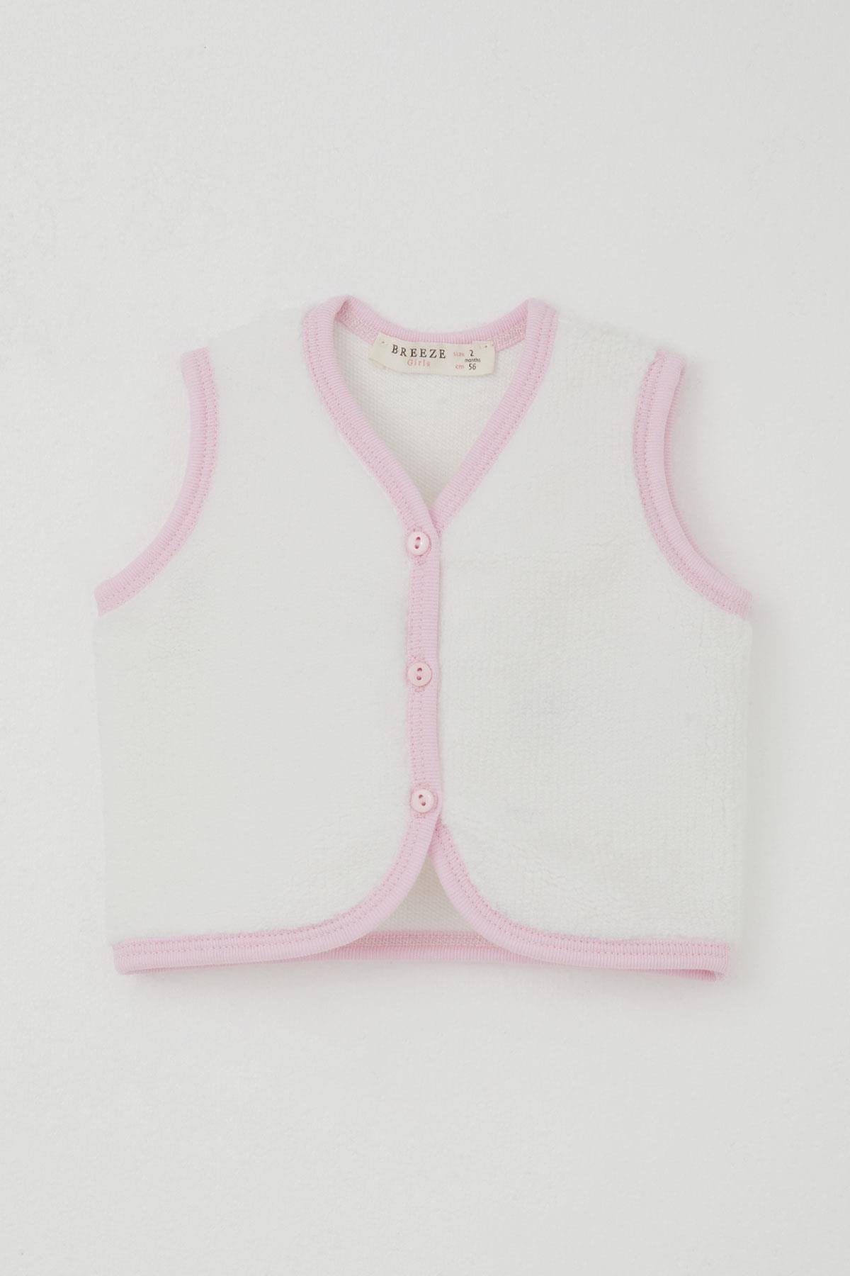 BRE Breeze Baby Girl Fleece Vest with Buttons 0-9 Months, White - Macuspana