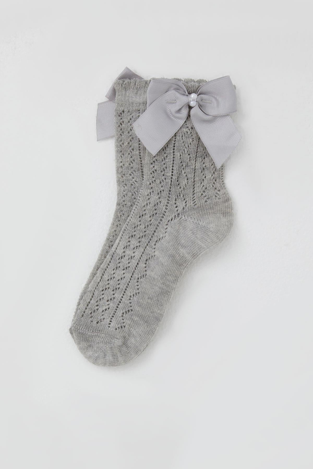BRE Katamino Girl Child Mesh Socket Socks with Bow Accessory Pearl 5-8 Years, Gray Melange - Federal Way