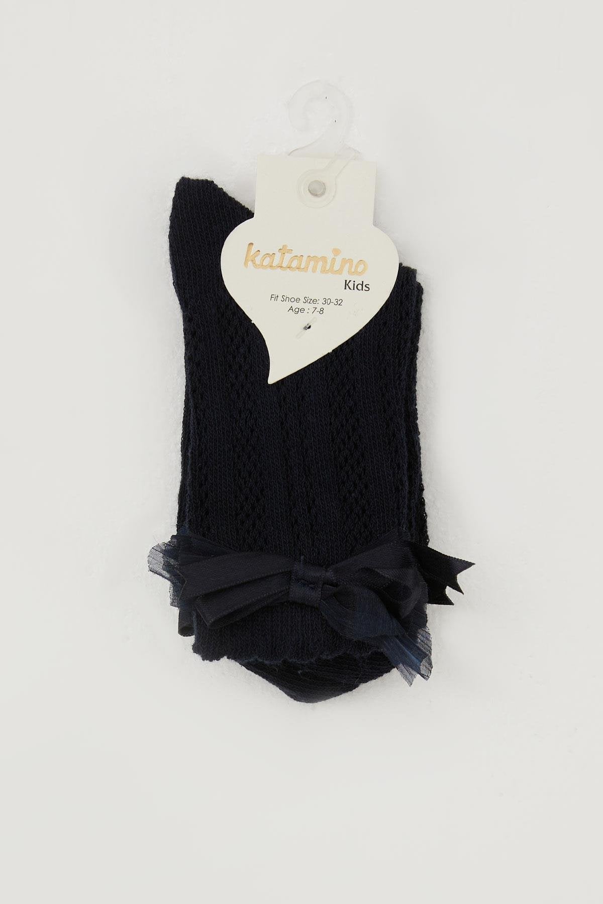 BRE Katamino Girl's Socks with Bow Accessories on the Ankle Part, 7-8 Years, Navy Blue - Tulsa