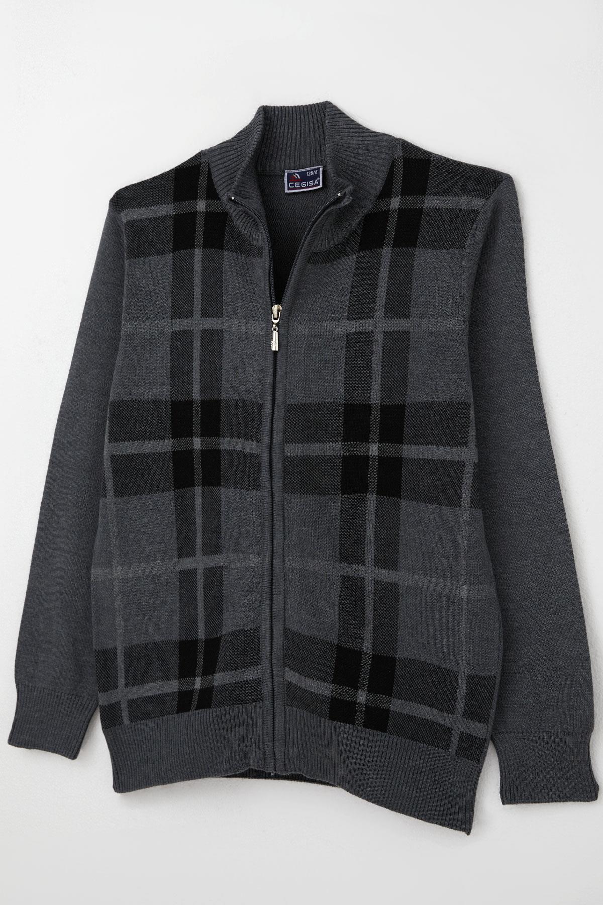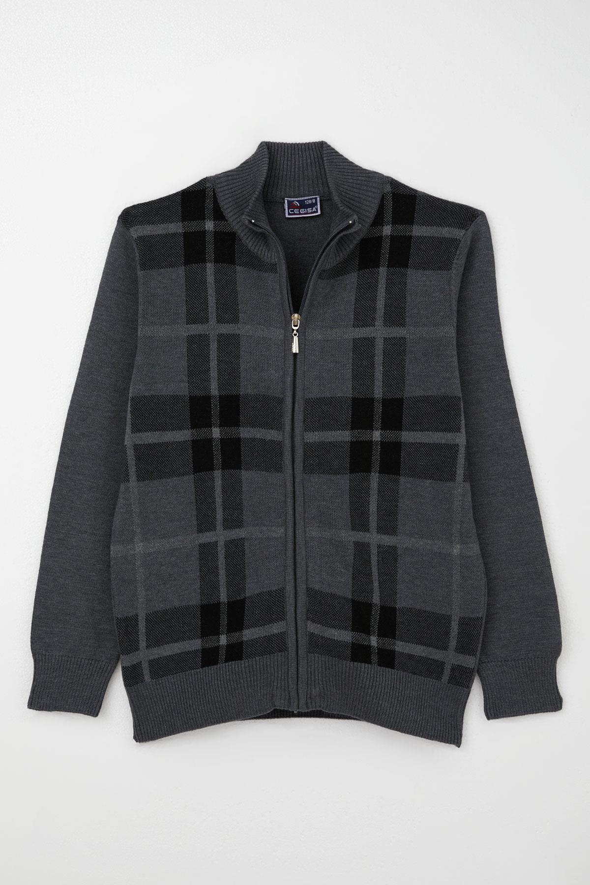 BRE Cegısa Boy's Sweater with Zipper Plaid Pattern 6-9 Years, Gray - Deurne