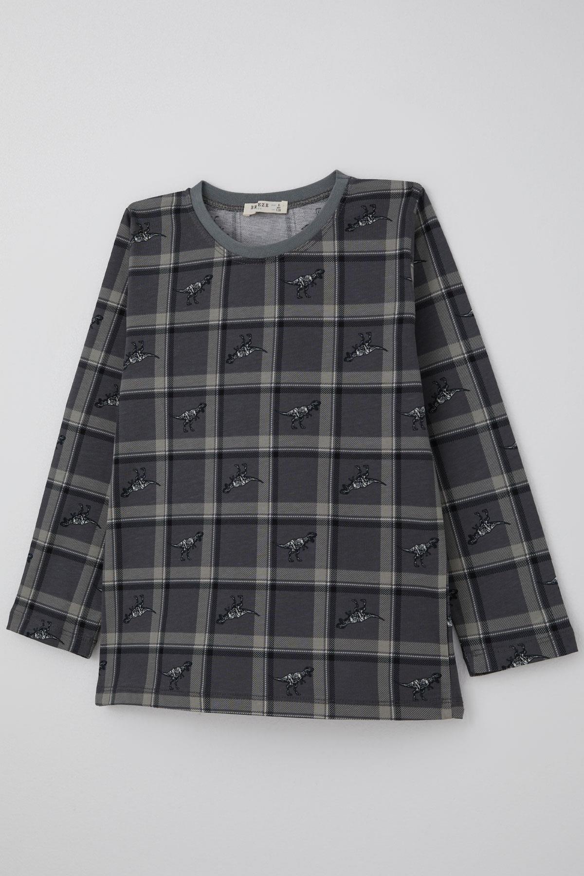 BRE Breeze Boys' Pajama Set Dinosaur Kingdom Plaid Patterned 4-8 Years, Gray - Pantin