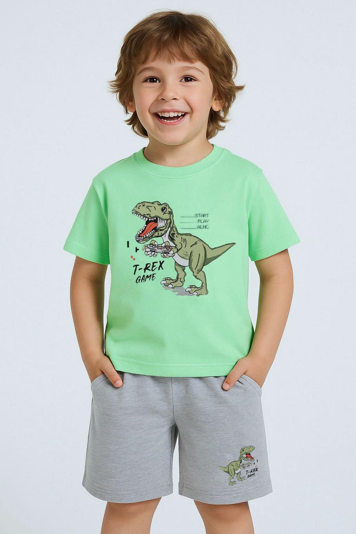 BRE Breeze Boys' Shorts Set Console King Player Dinosaur Printed 2-6 Years, Aqua Green - Gondomar