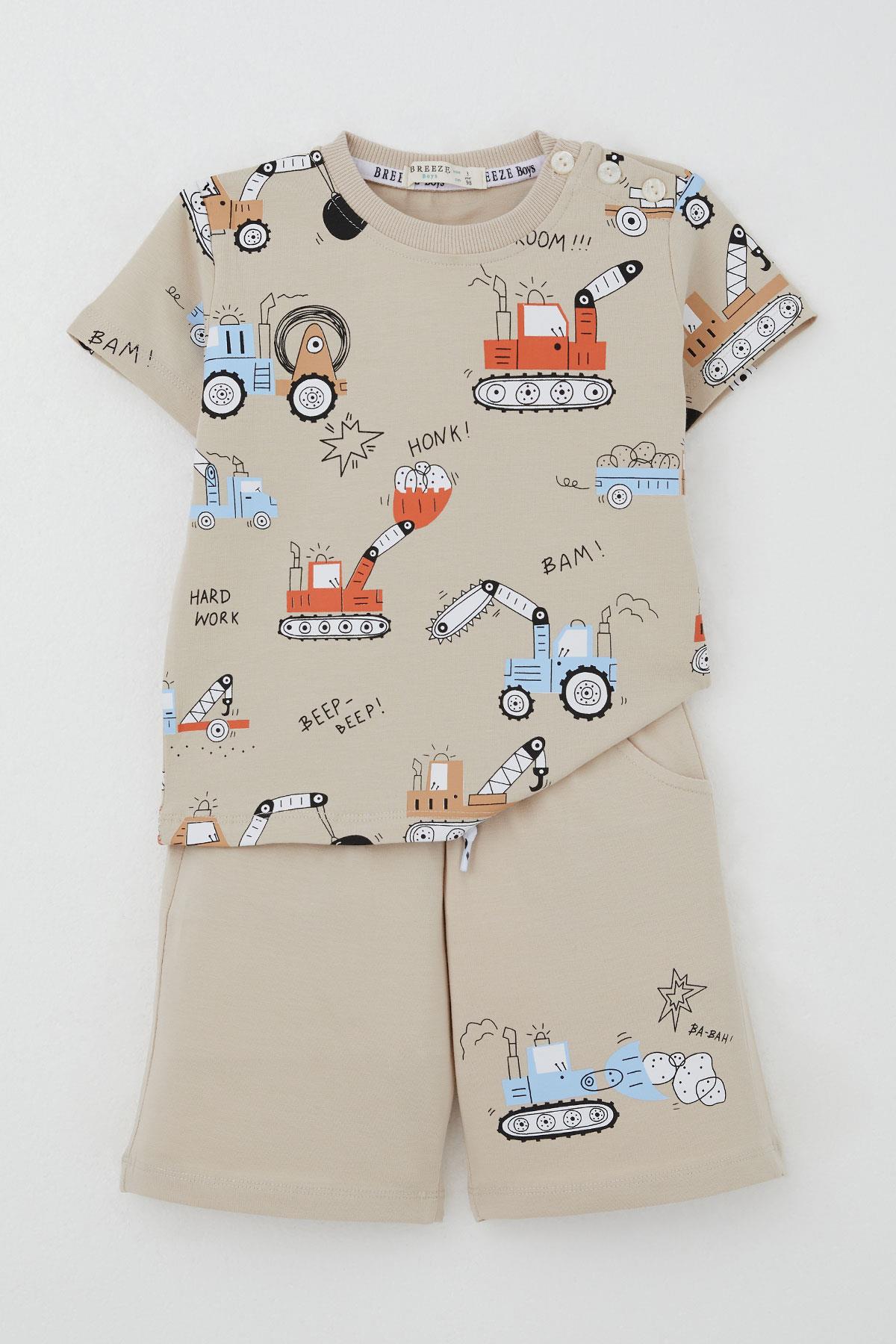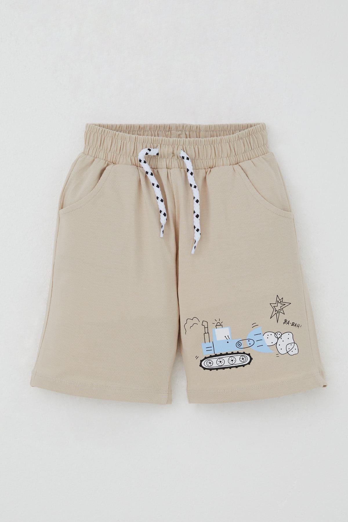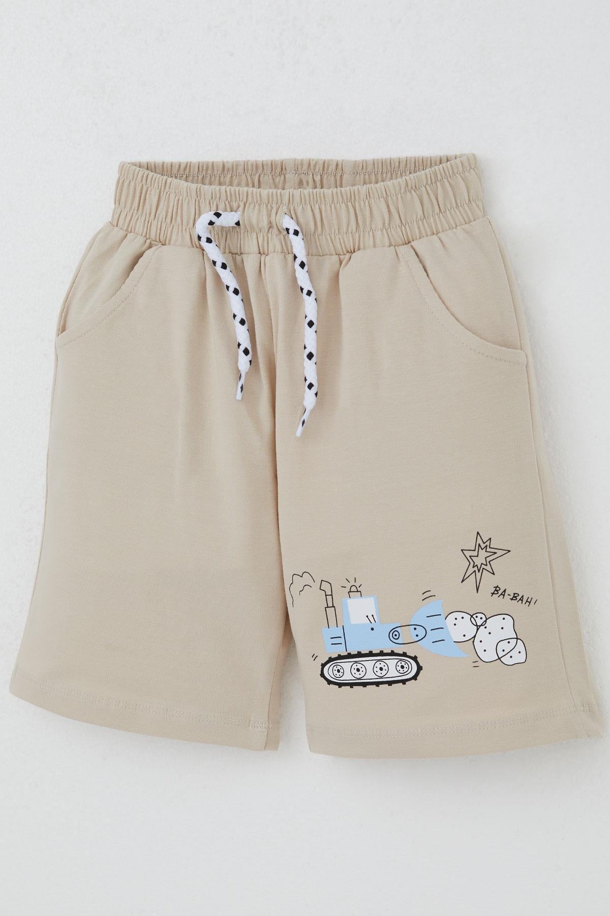 BRE Breeze Boys' Shorts Set Fun Construction Vehicles Patterned 1.5-5 Years, Beige - Freehold