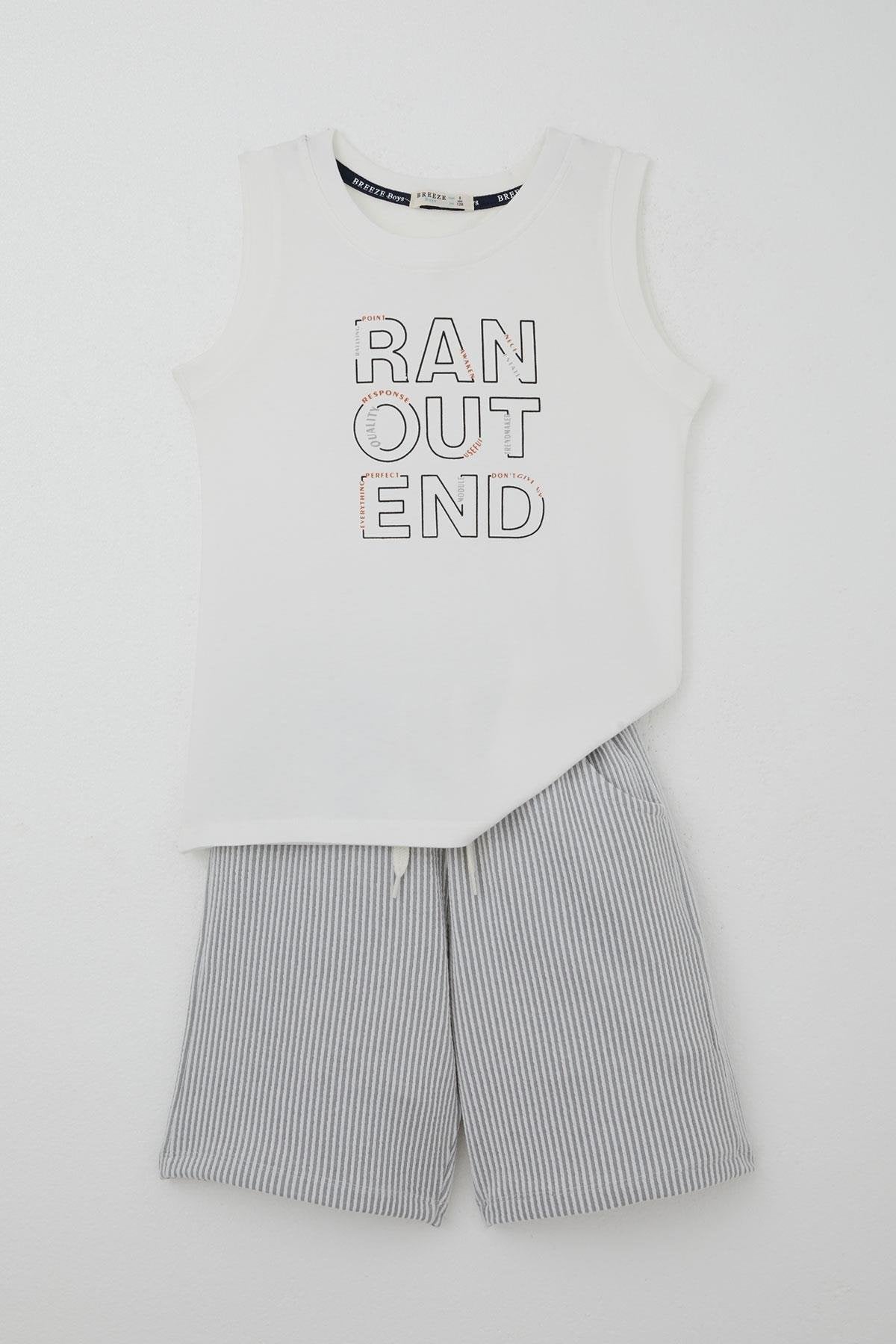 BRE Breeze Boys' Shorts Set Sleeveless Summer Printed Lace-Up Accessorized 84 Years, White - Pearl City