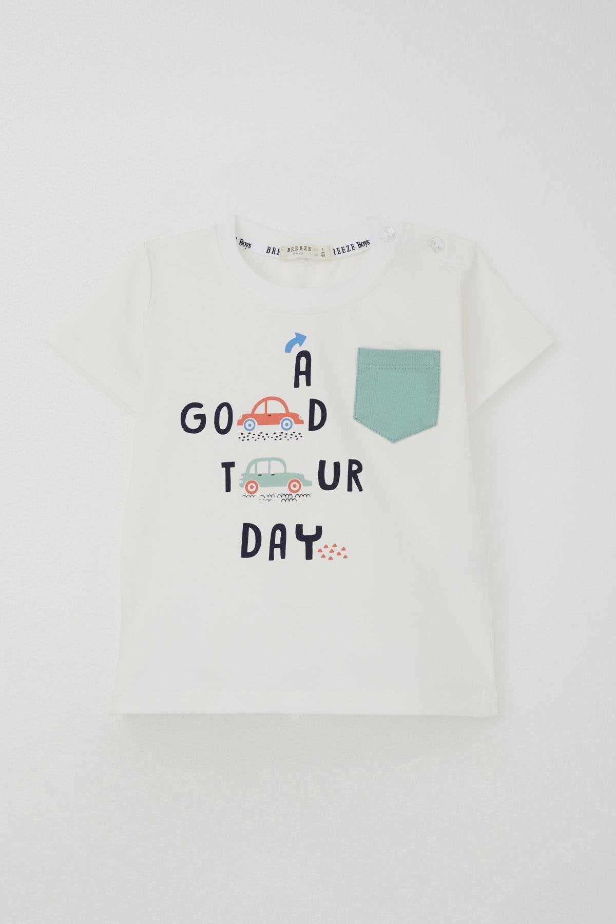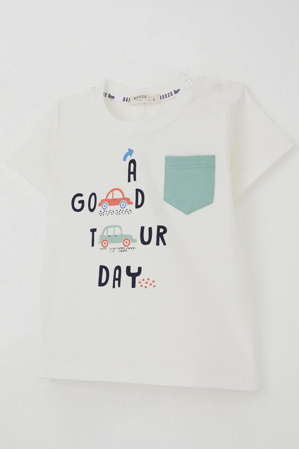 BRE Breeze Boys' Shorts Set with Car Printed Pocket Detail 1.5-5 Years, Ecru - Hinckley
