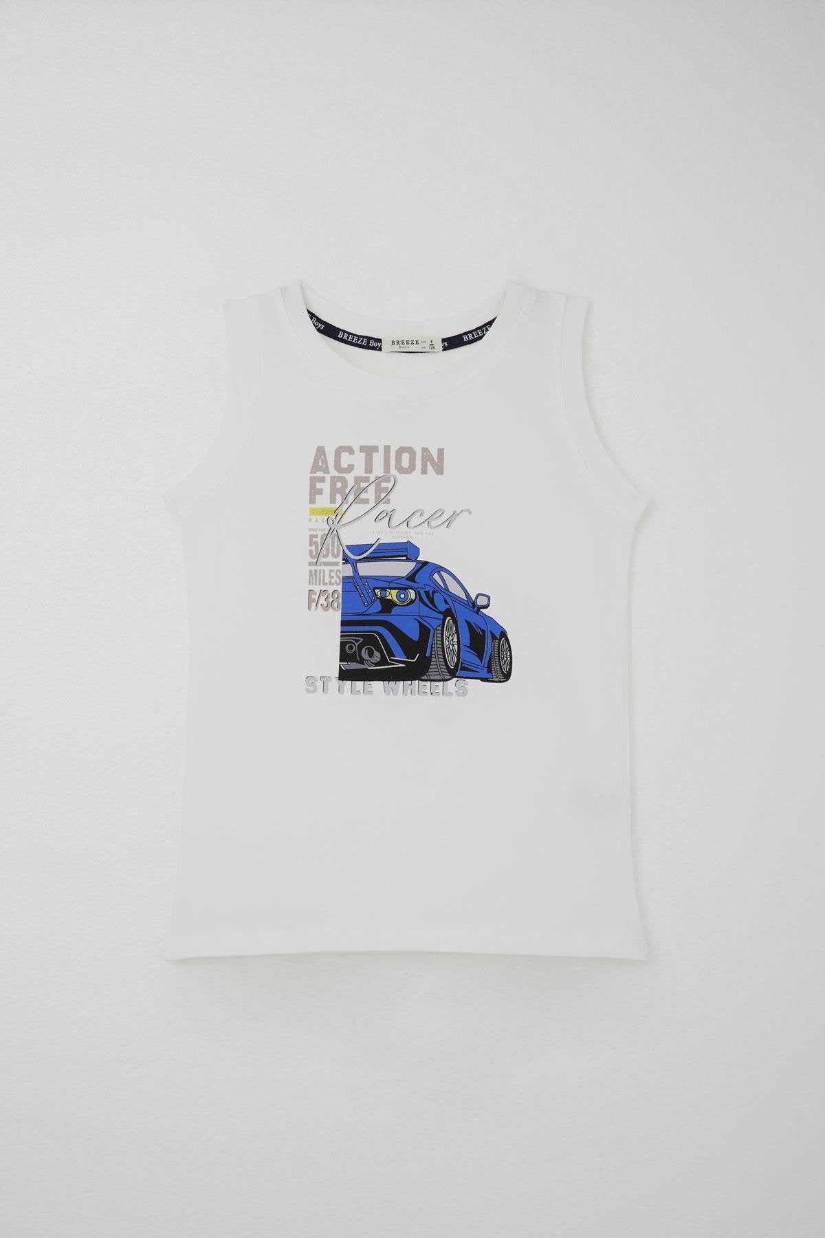 BRE Breeze Boys' Shorts Set Zero Sleeve Hero of the Race Track Car Printed 50 Years, White - Poza Rica de Hidalgo