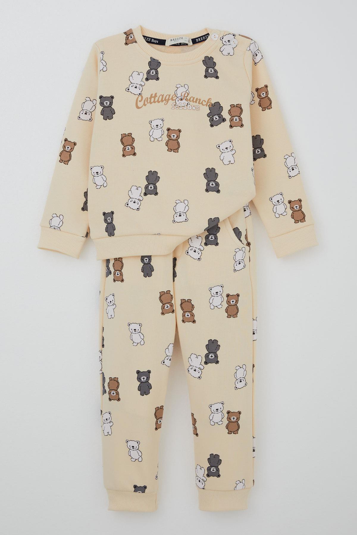 BRE Breeze Boys' Tracksuit with Cute Bear Pattern, 1-4 Years, Cream - Albano Laziale