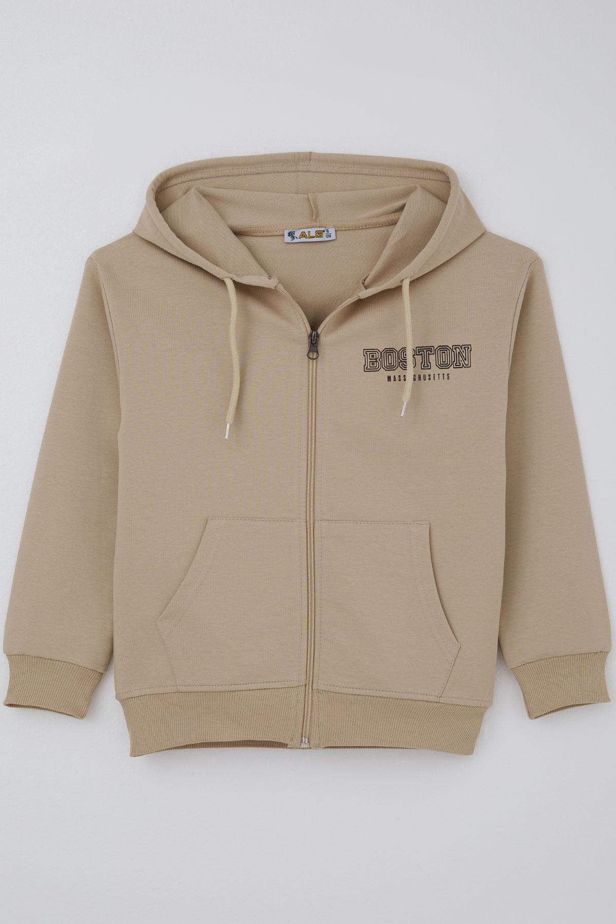 BRE Boy's Hooded Sweater with Printed Detail on the Back, 6-9 Years, Beige - Lewiston