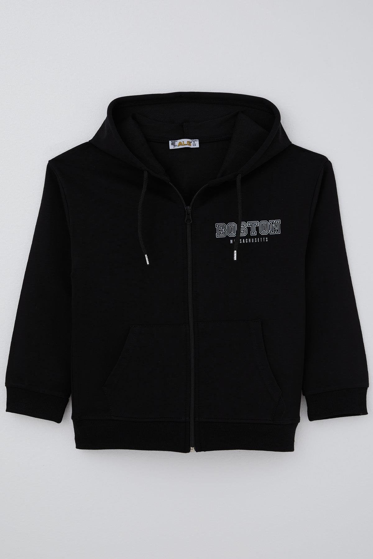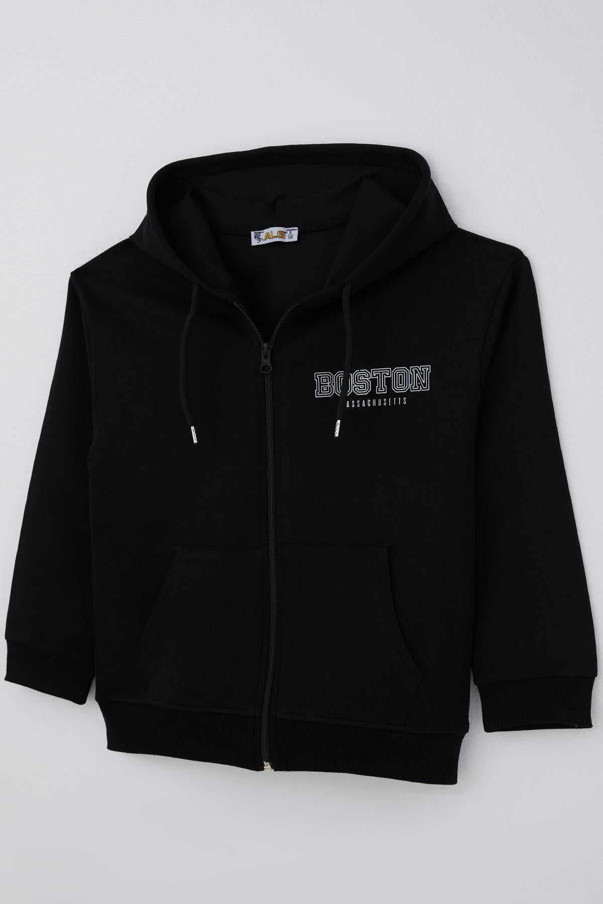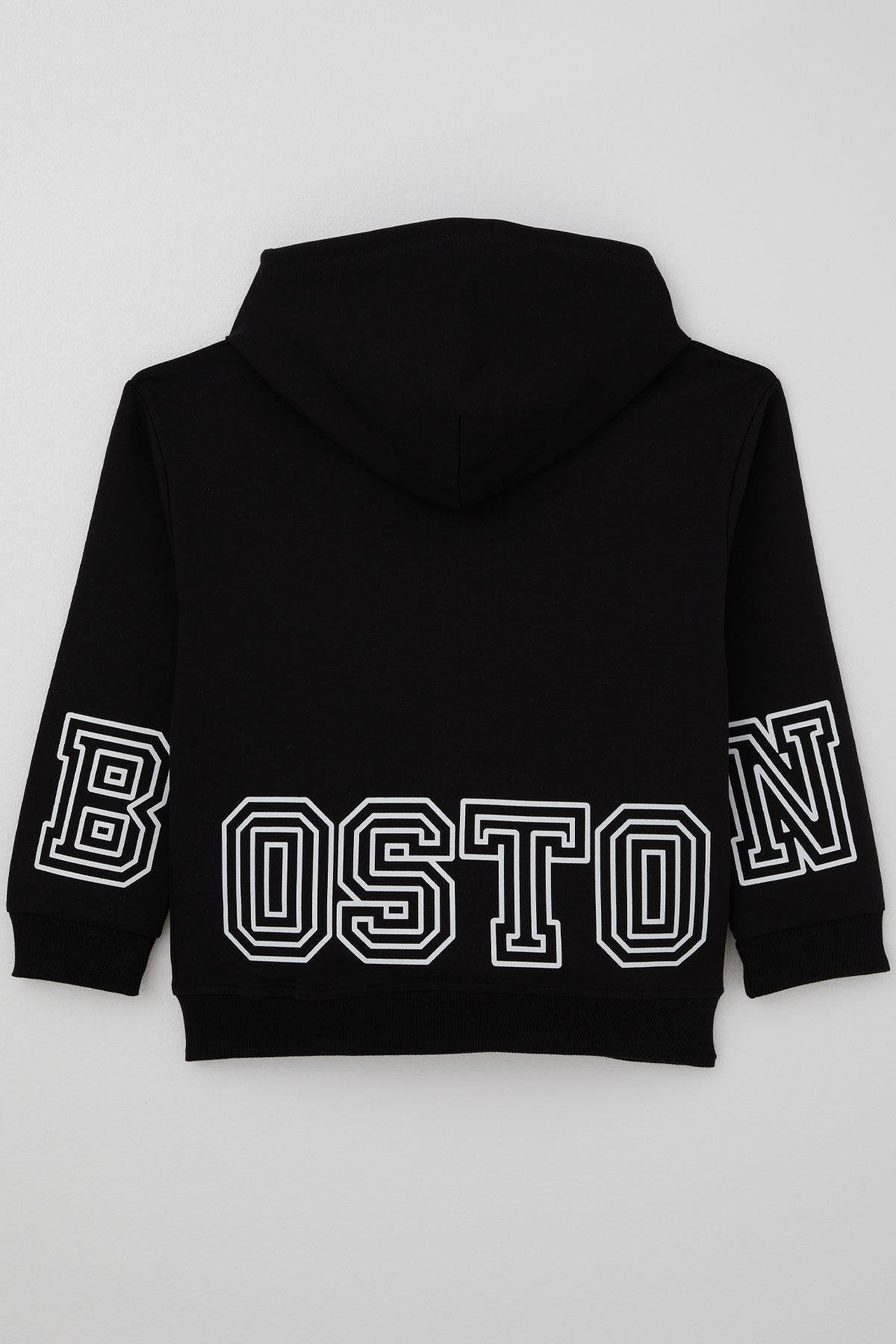BRE Boy's Hooded Sweater with Printed Detail on the Back, 6-9 Years, Black - Highlands Ranch