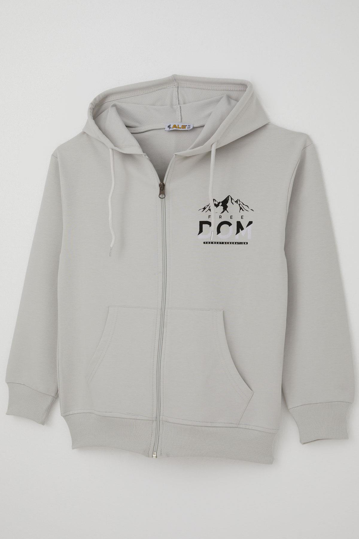 BRE Boy's Sweater with Zipper Motivation Theme Printed on the Back Part 103 Years, Light Grey - Nettetal