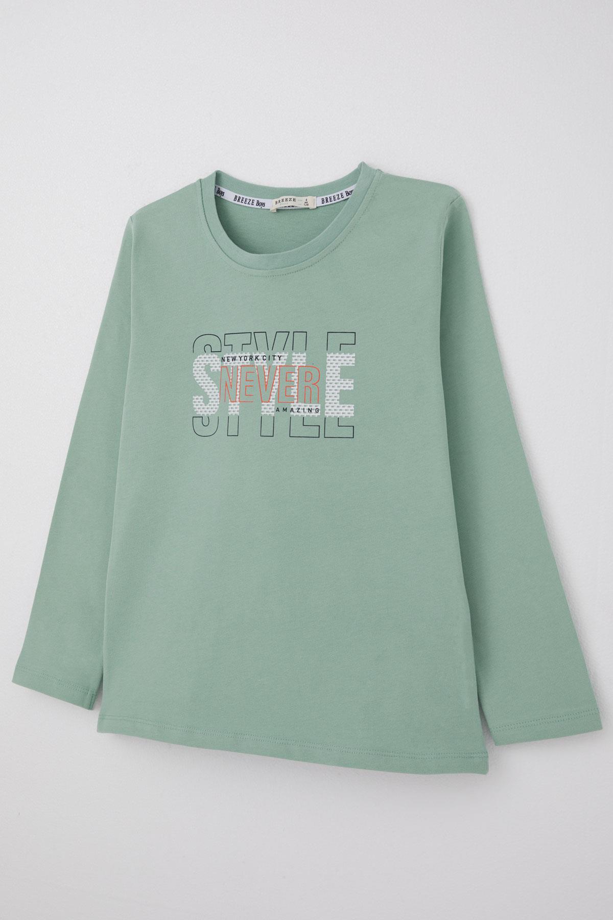 BRE Breeze Boys' Long Sleeve T-Shirt with Printed Text, 62 Years, Aqua Green. - Veghel
