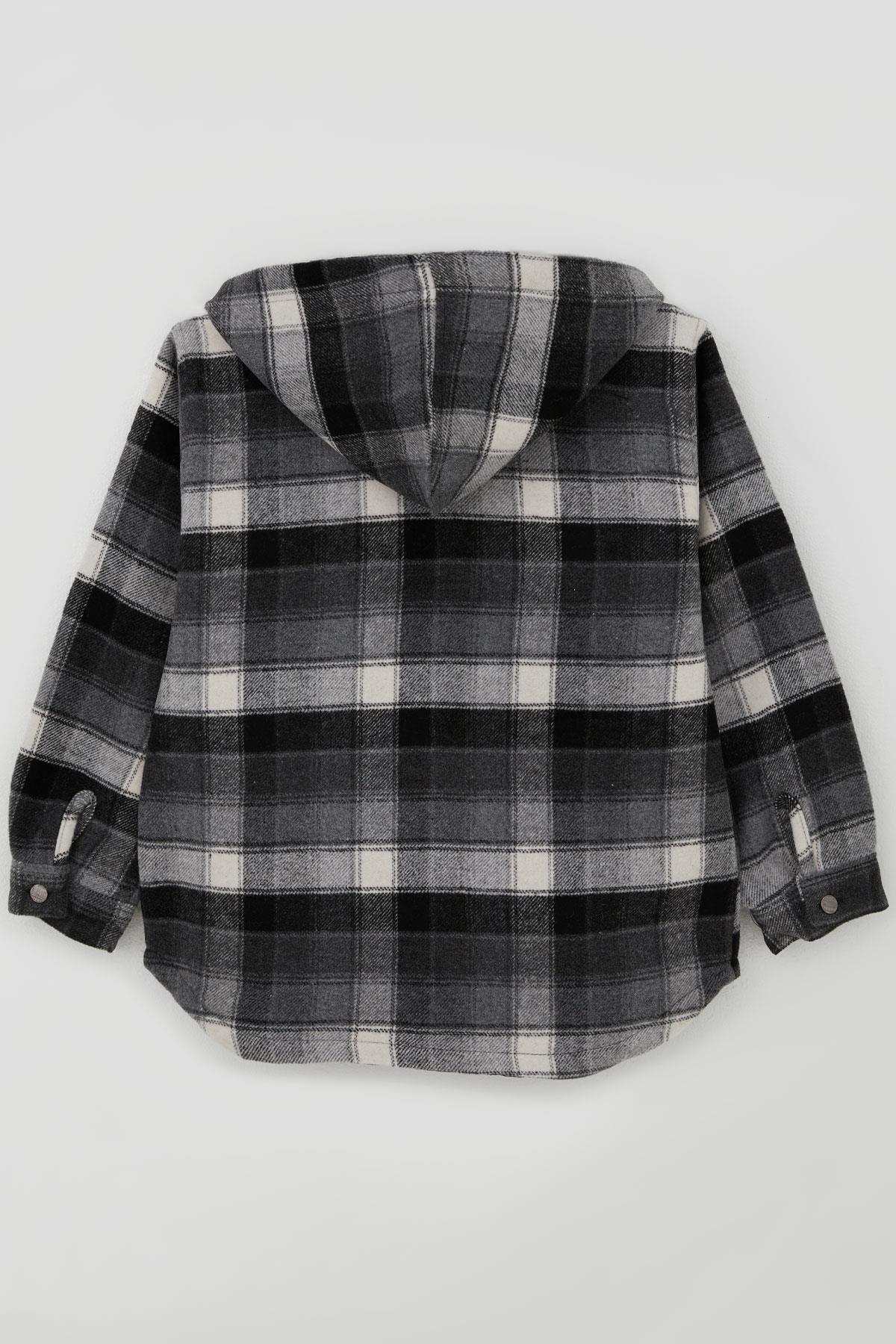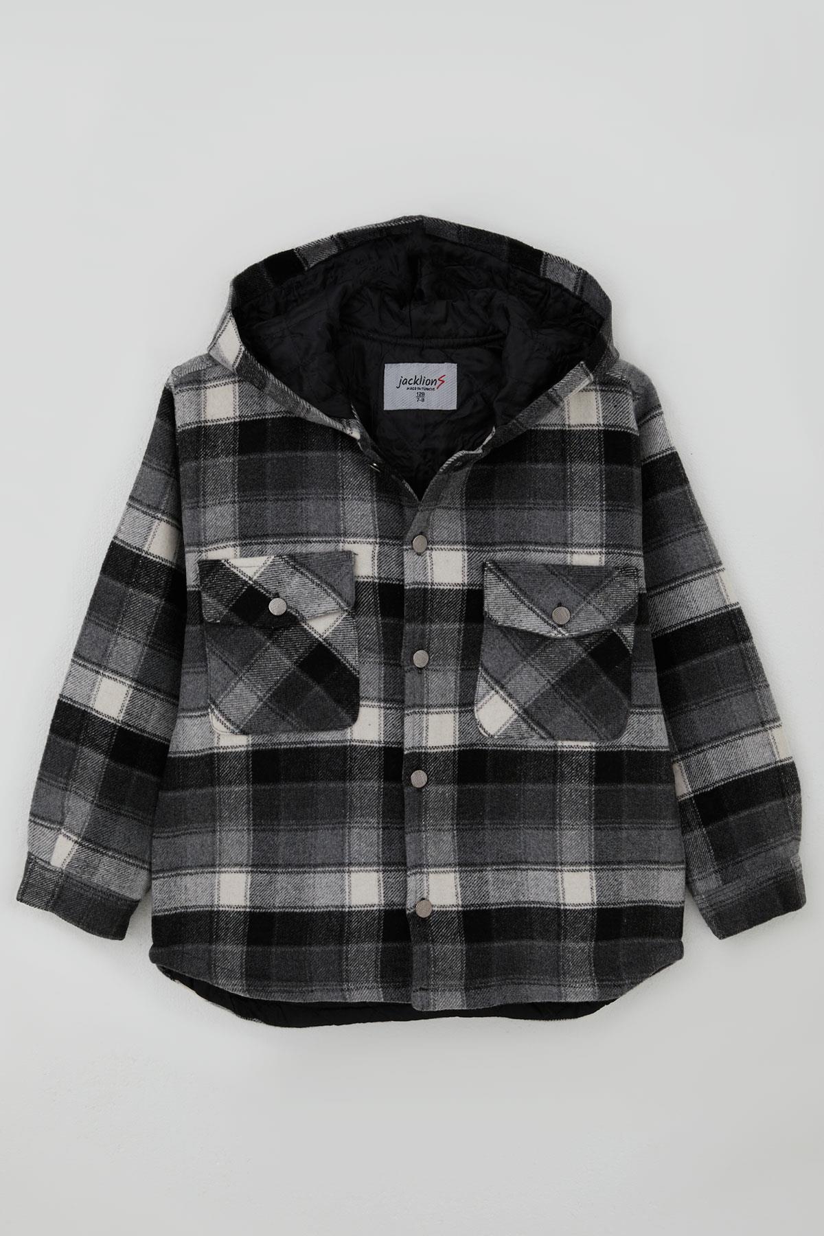 BRE Jack Lions Boys' Jacket Plaid Patterned Hooded Buttoned Pocketed 5-9 Years, Grey - Vicenza