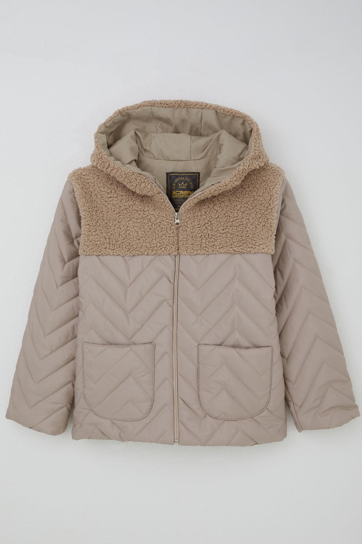 BRE Reycan Boy's Quilted Jacket with Zipper Plush Detail 5-8 Years, Stone - Whittier