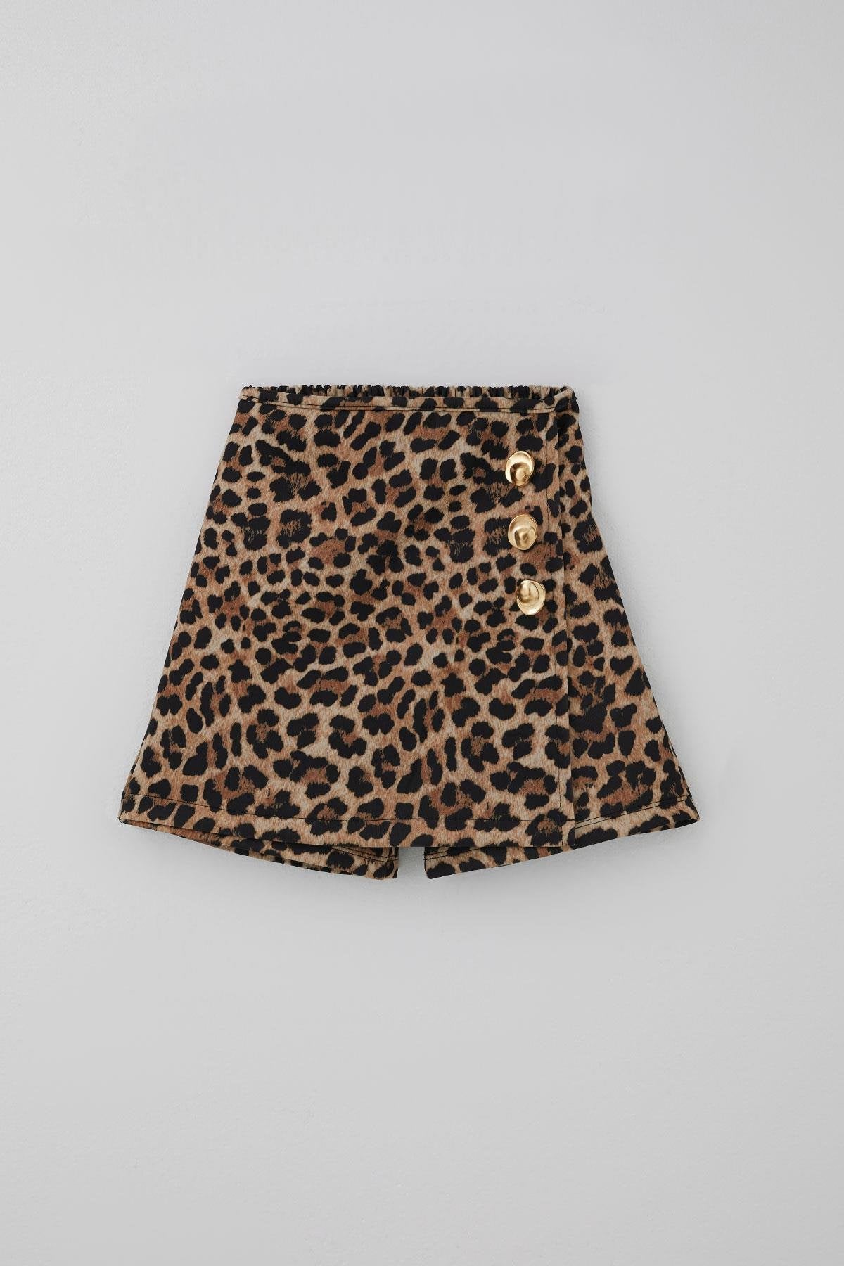BRE Breeze Girl Child Shorts Skirt with Leopard Pattern Button Accessory 62 Years, Brown - Valenciennes