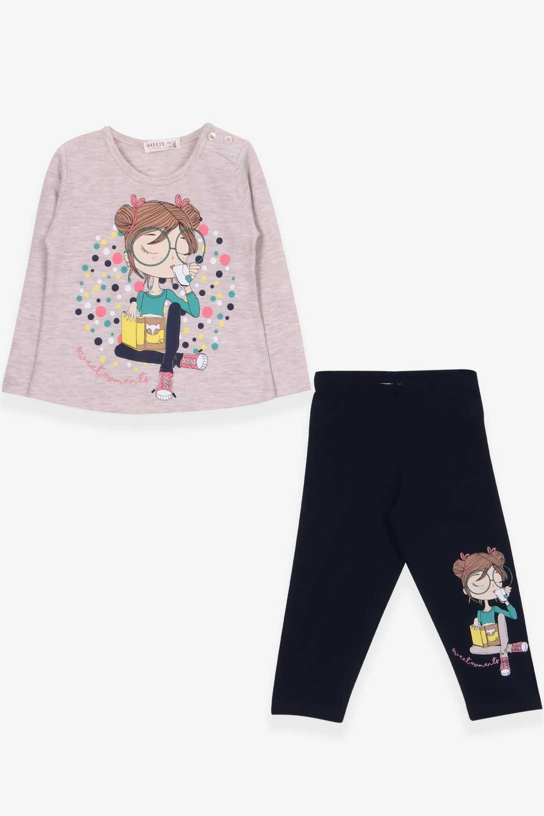 BRE Breeze Girl Child Capri Leggings Set Girl Printed 1.5-5 Years, Beige Melange - Meerbusch