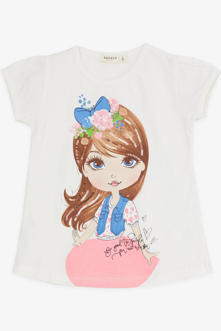 BRE Breeze Girl Child Leggings Set Sequined Girl Printed 3-8 Years, Ecru - Unna