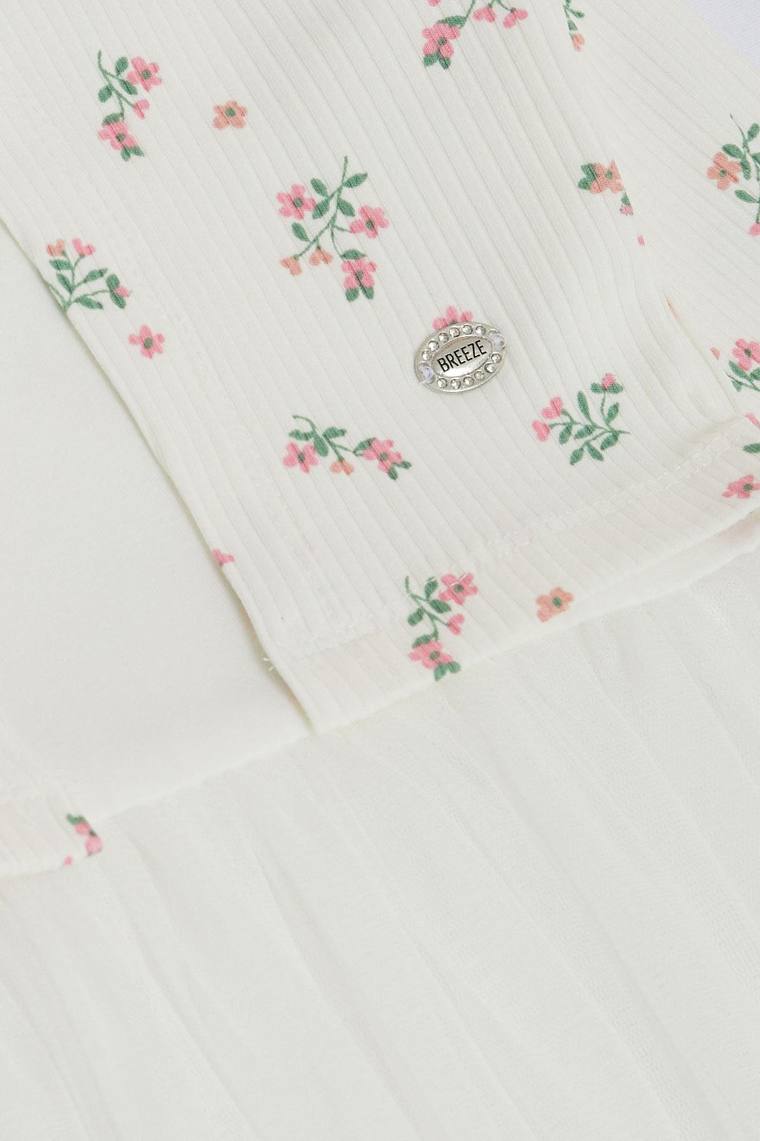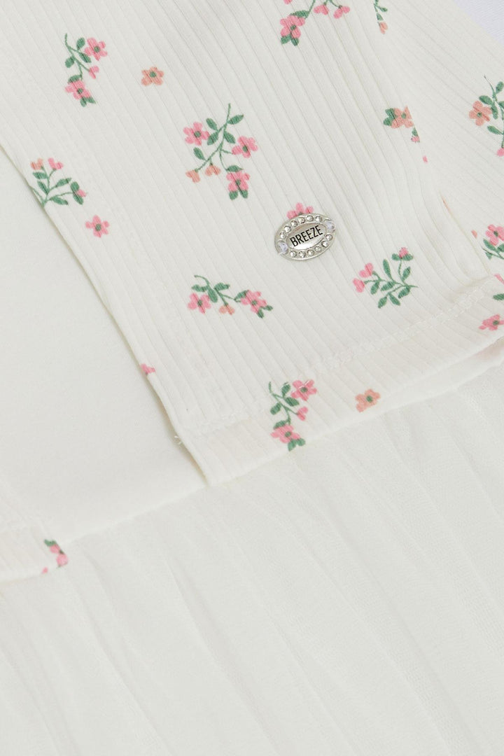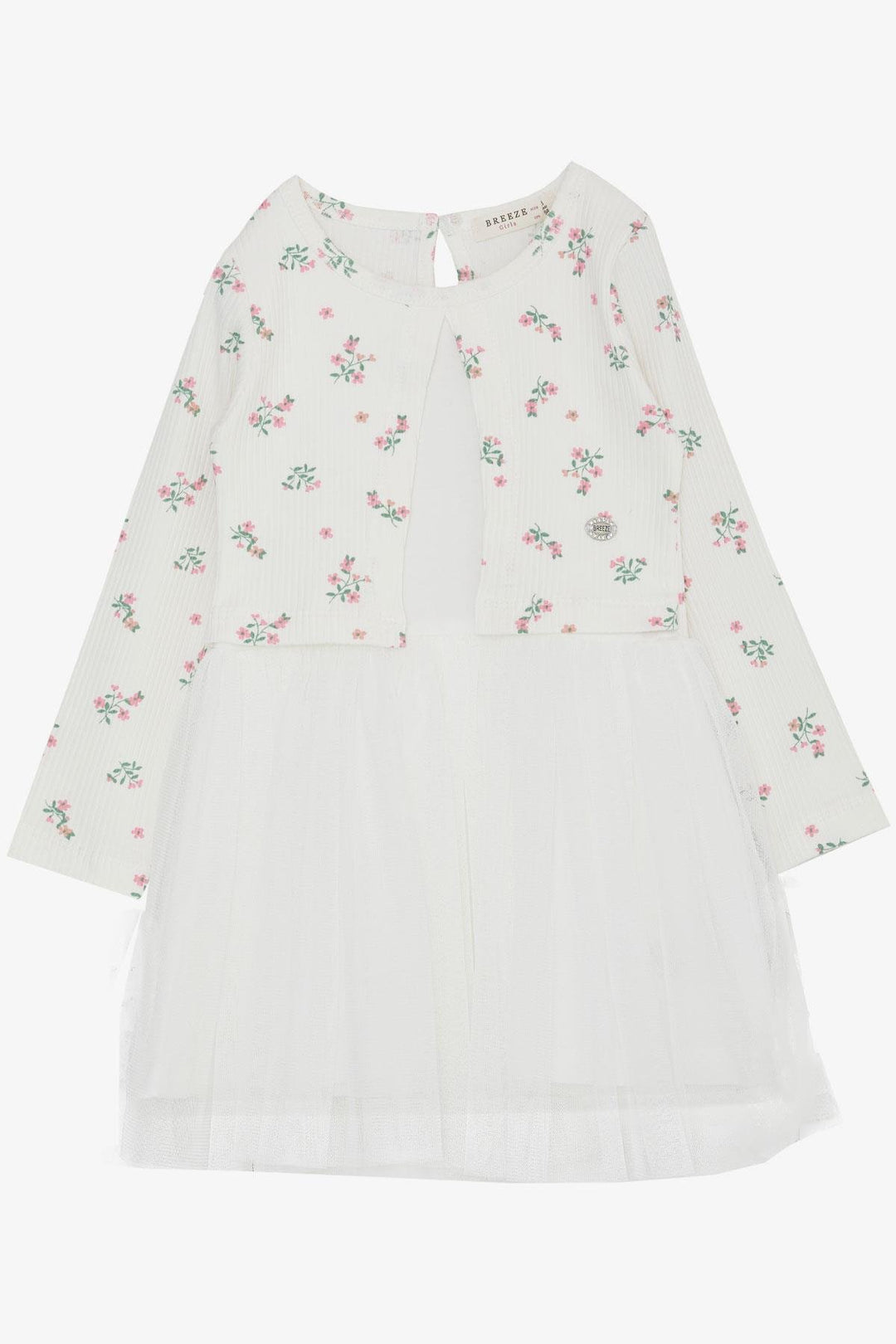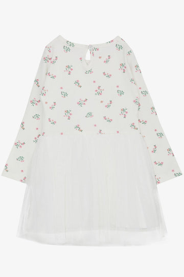 BRE Breeze Girl Child Long Sleeve Abaya with Tulle Flower Pattern, 3-8 Years, White - Datteln