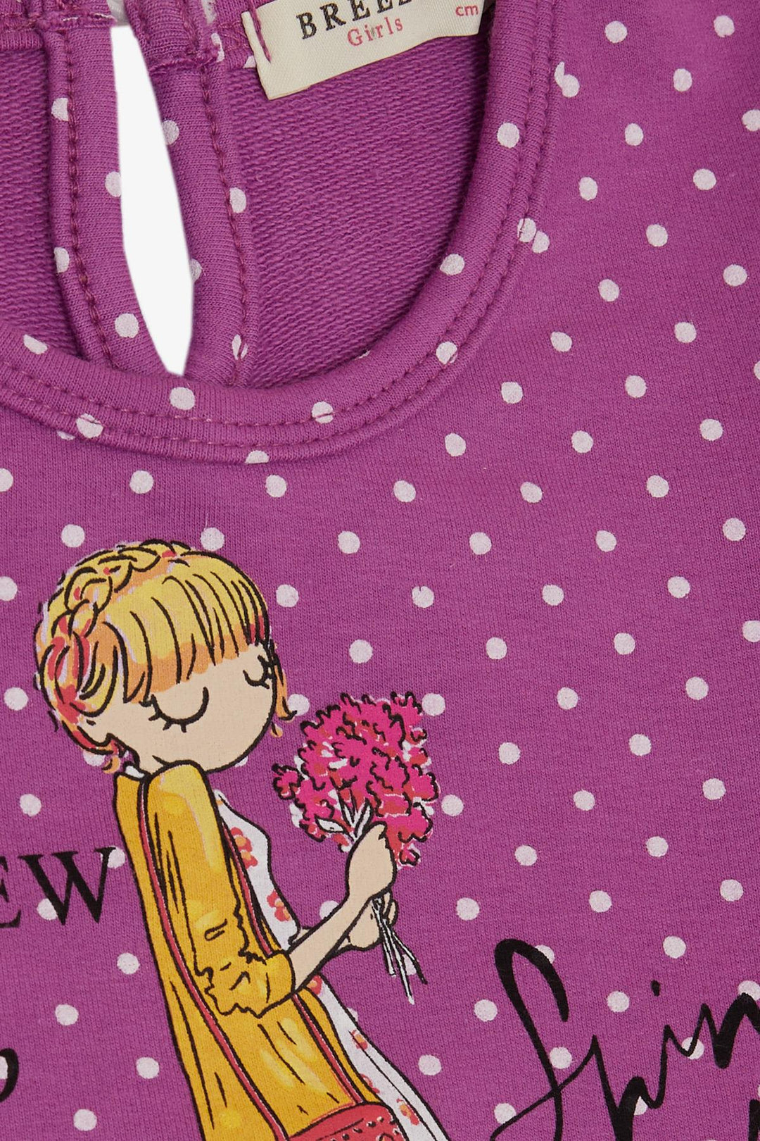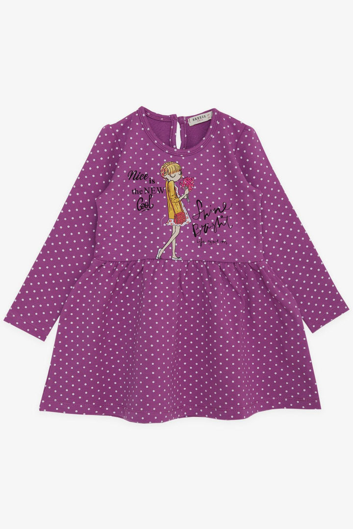 BRE Breeze Girl Child Long Sleeve Dress Polka Dot Patterned 3-7 Years, Purple - Stendal