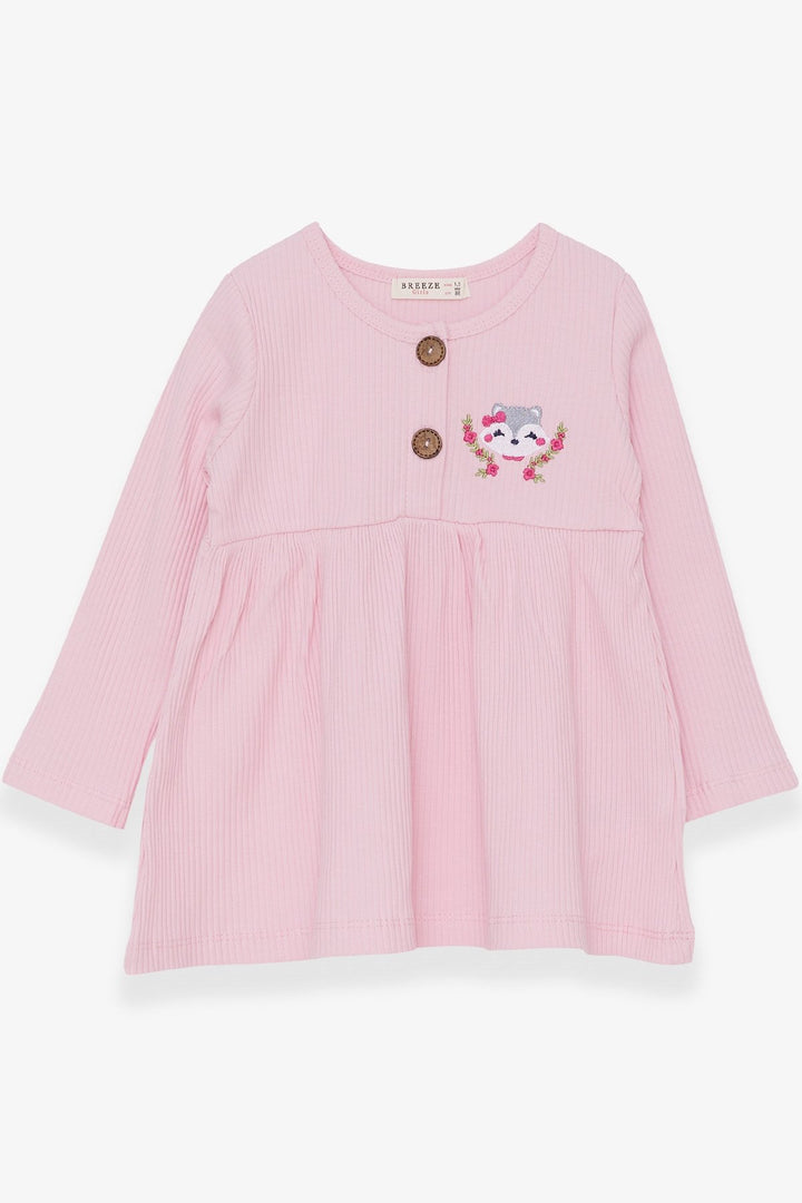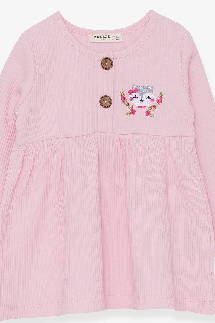 BRE Breeze Girl Child Long Sleeve Dress with Fox Embroidery, 1.5-5 Years, Powder - Canicattì