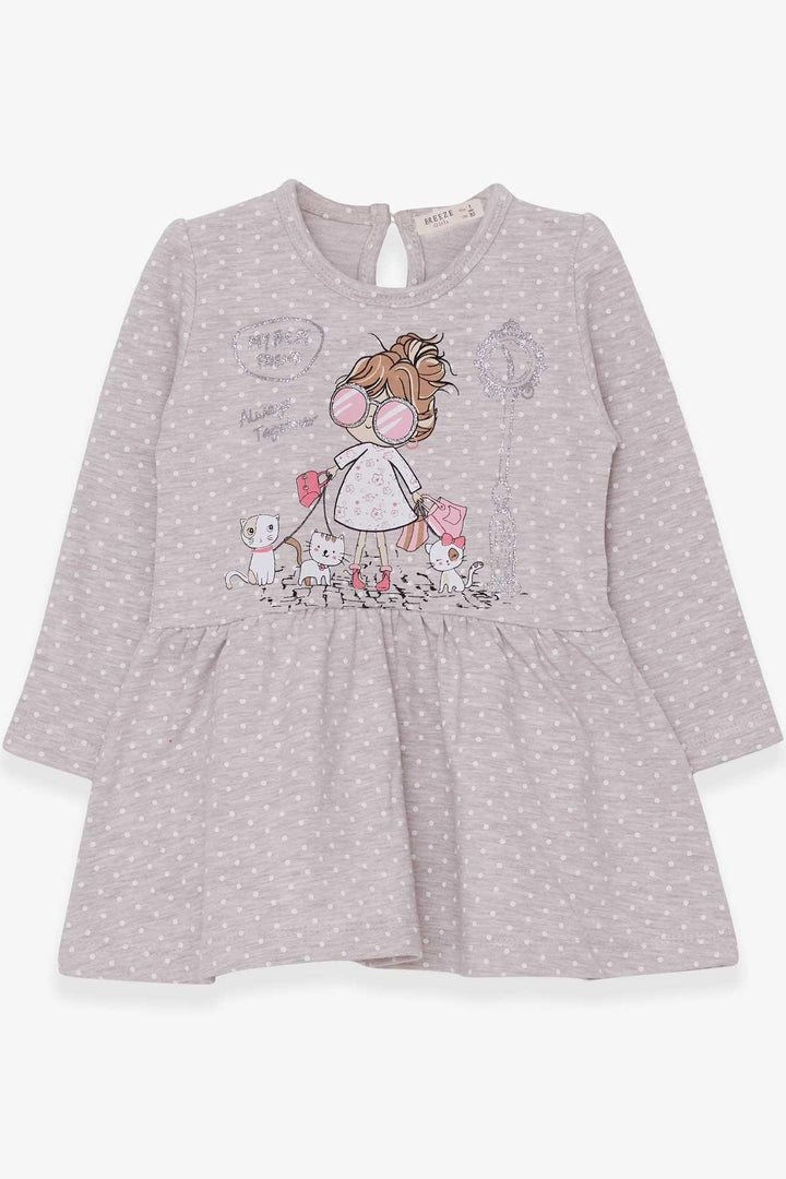 BRE Breeze Girl Child Long Sleeve Dress with Glitter Glasses Printed Girl 1-4 Years, Beige Melange - Adelaide
