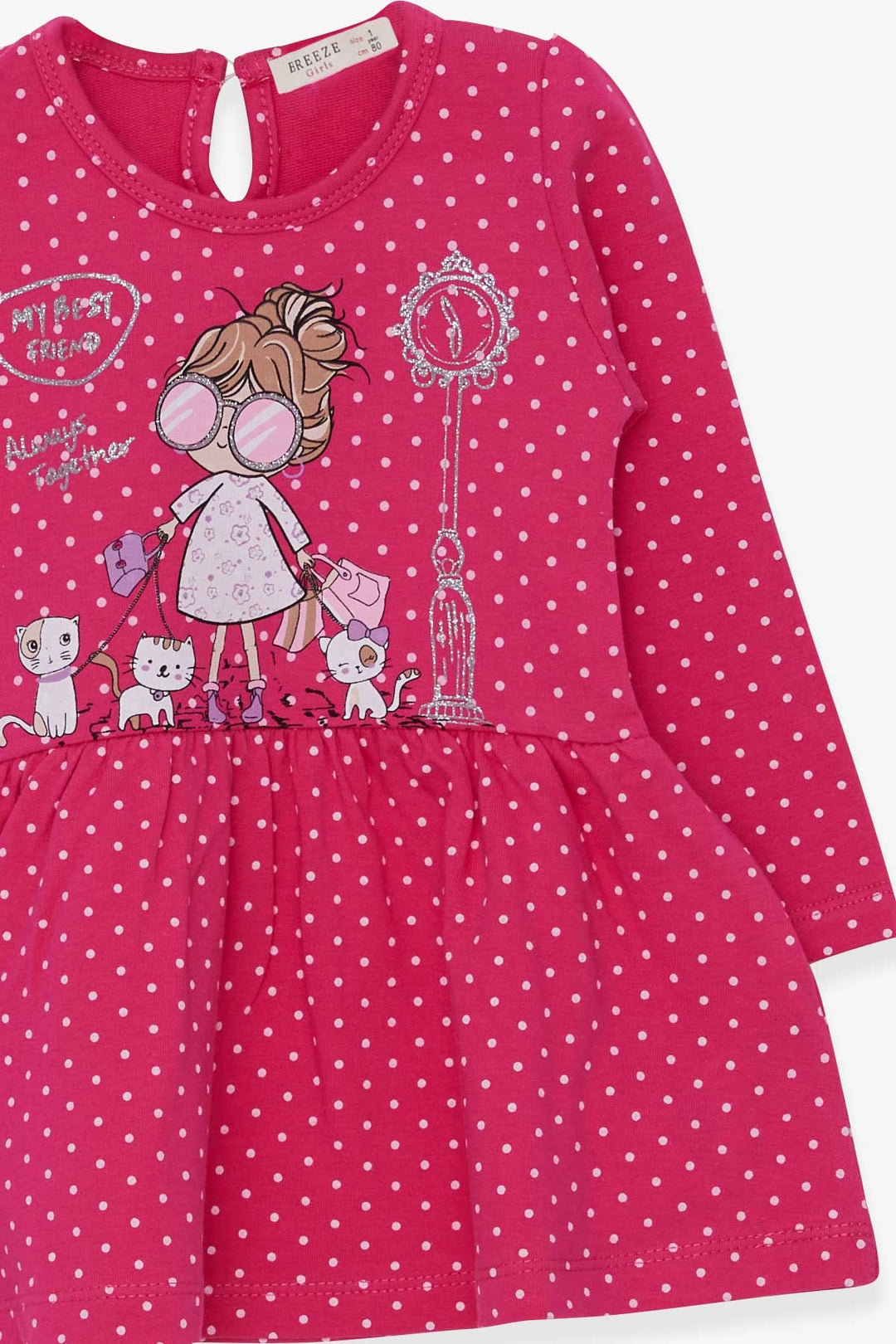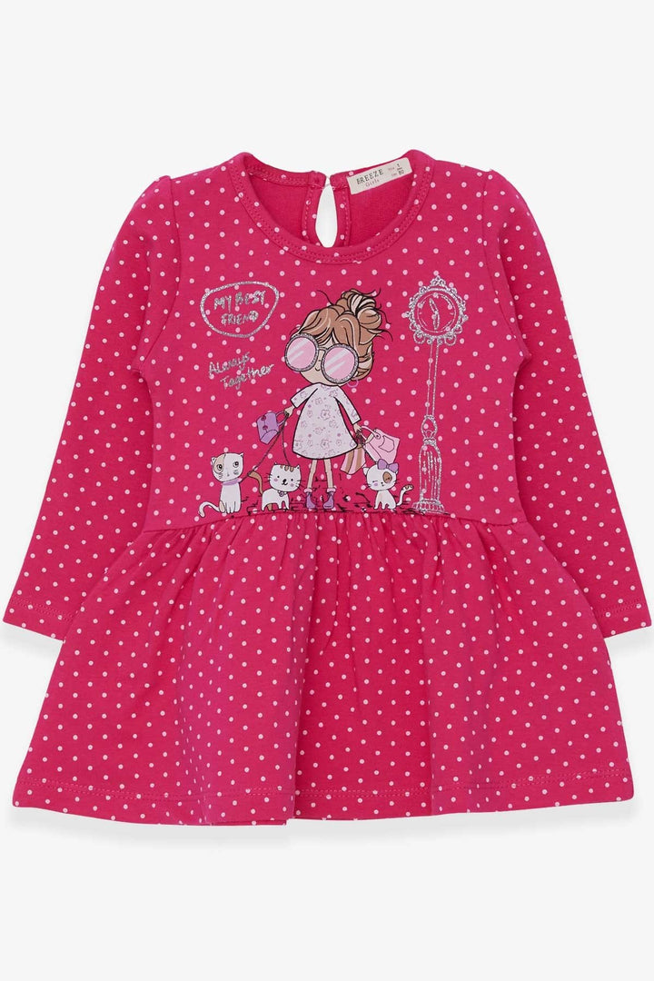 BRE Breeze Girl Child Long Sleeve Dress with Glitter Glasses Printed Girl, 1-4 Years, Pink - Arona