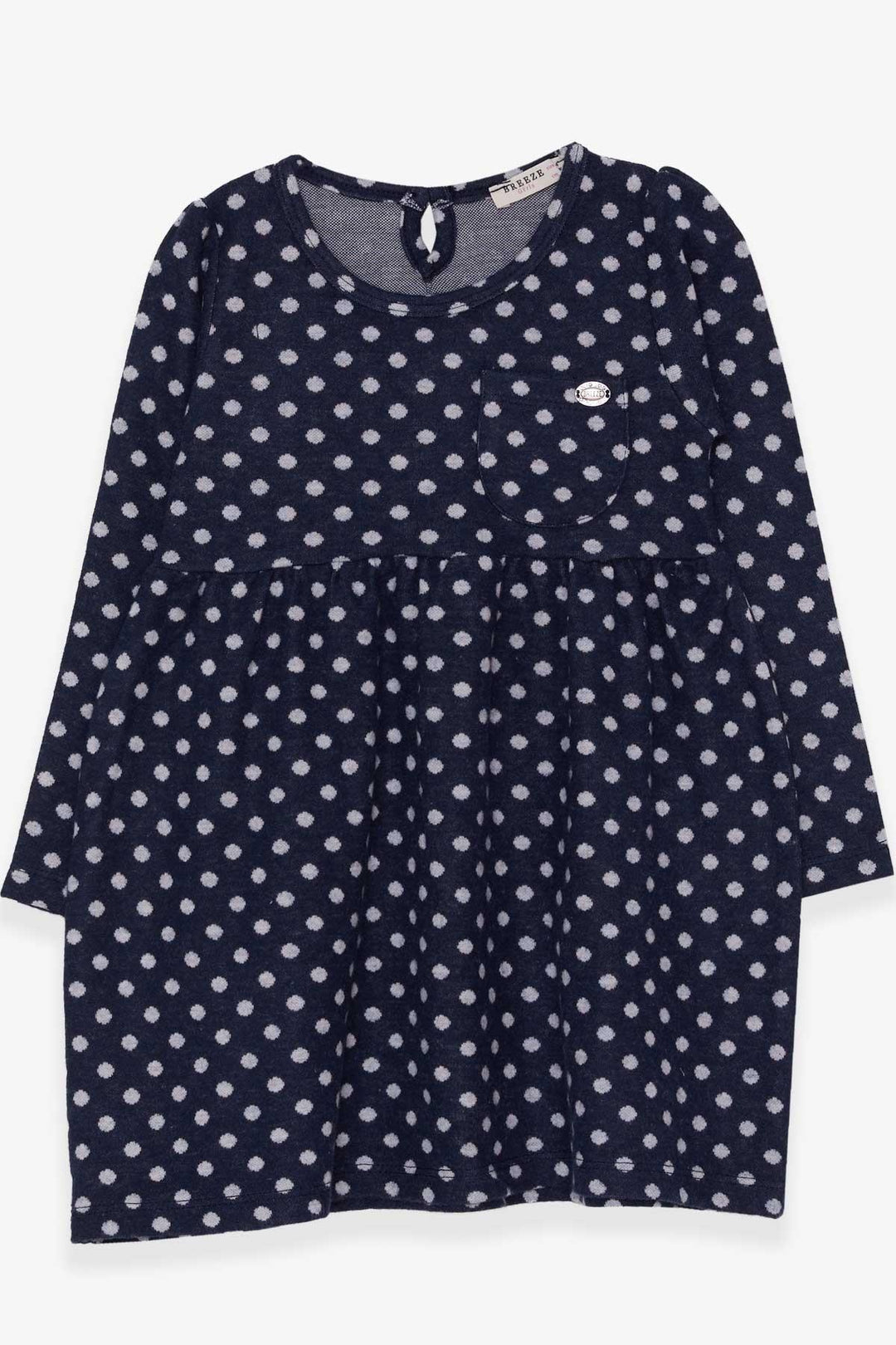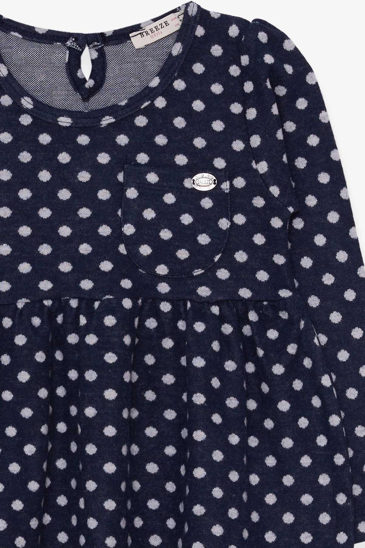 BRE Breeze Girl Child Long Sleeve Dress with Polka Dot Pattern, 4-8 Years, Navy Blue - Vancouver