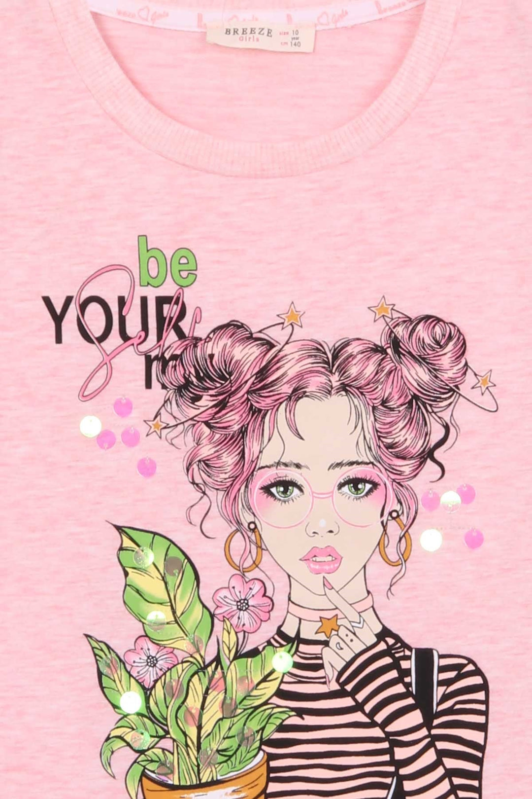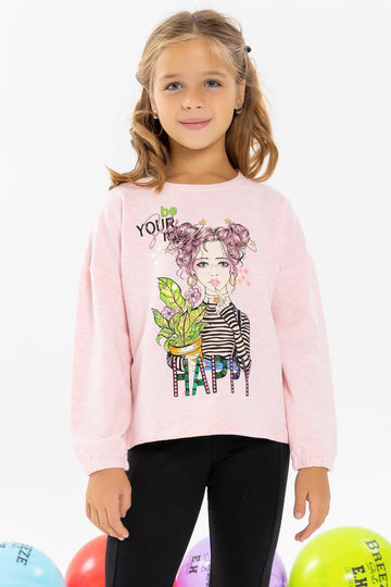 BRE Breeze Girl Child Long Sleeve T-Shirt Portrait Girl Printed 104 Years, Salmon Melange - Kehl