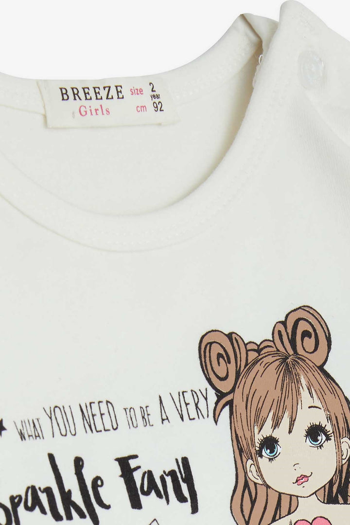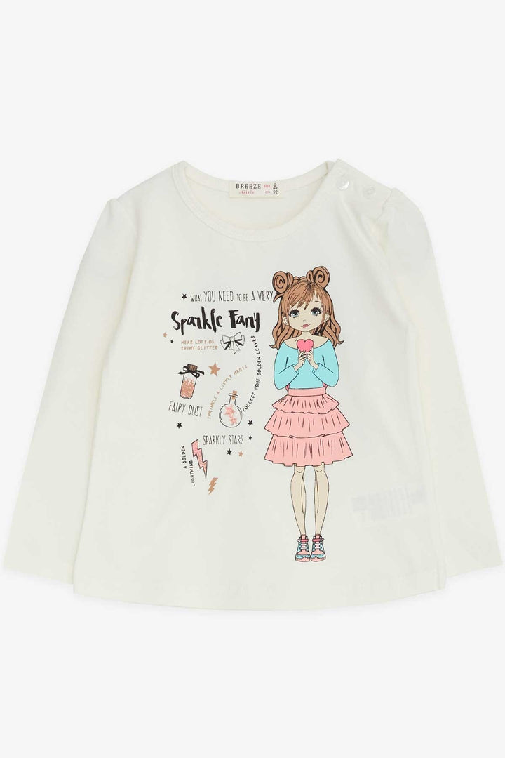 BRE Breeze Girl Child Long Sleeve T-Shirt Printed 1-4 Years, Ecru - Venlo